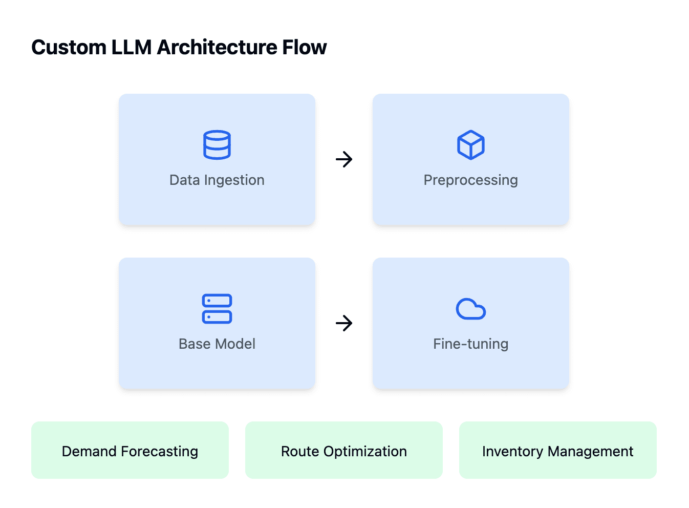 Building a custom LLM with your company's data is a transformative step toward optimizing your logistics and supply chain operations. With advanced technical implementations, real-world integration, and a focus on delivering tangible business value, you can maintain a competitive edge in the industry.